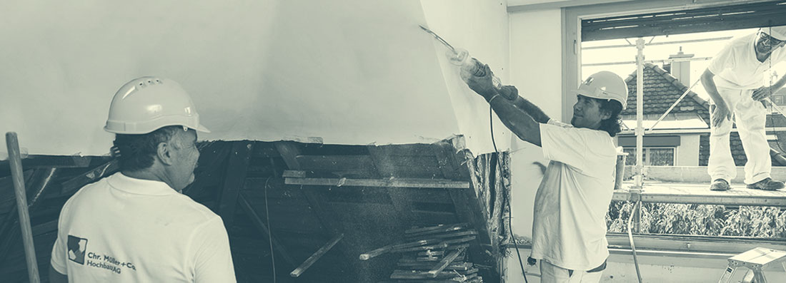 Bei der Chr. Müller Hochbau besteht dieses Fundament aus Sorgfalt, Zuverlässigkeit und Flexibilität. Mit diesen Qualitäten führen wir Umbauten und Erneuerungen von Ein- und Mehrfamilienhäusern sowie von Bürogebäuden aus - von kleinen Kundenarbeiten bis zu schlüsselfertigen Sanierungen.